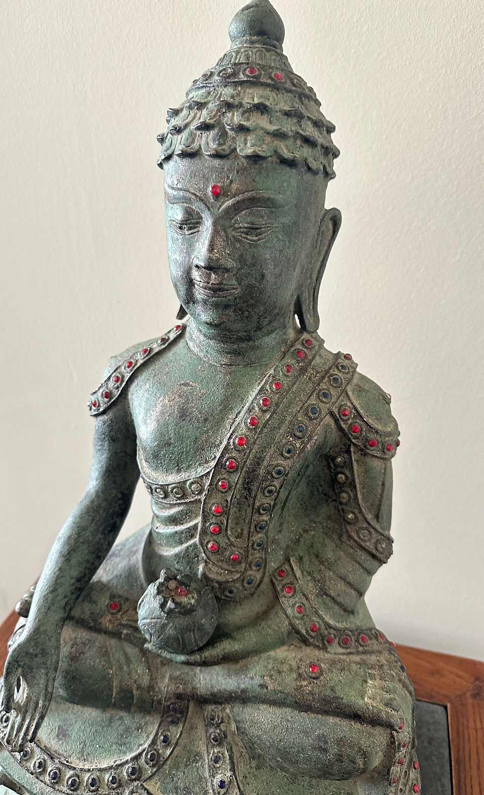 19) Bronze Khmer Style Seated Buddha with Red Gemstones